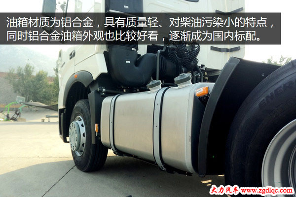 油箱采用鋁合金材質(zhì),具有質(zhì)量輕、對柴油污染小的特點,也是目前國內(nèi)重卡的主流配置。同時原裝鋁合金油箱在外觀上也比較美觀,看起來更加的漂亮。