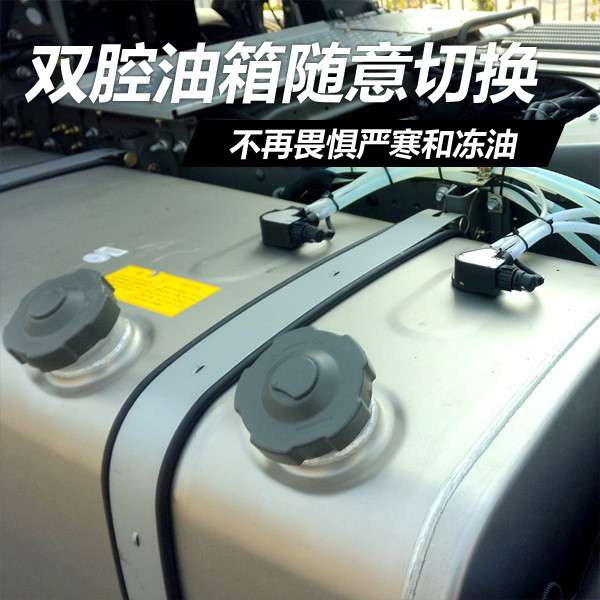 在一些高寒地區(qū)經(jīng)常出現(xiàn)柴油被凍、掛蠟的情況,使得很多車主不得不加裝一個副油箱,經(jīng)常是0號柴油和-35號柴油混用,但是由于技術(shù)、工藝等問題造成加裝的油箱在外觀、實用性上比較差。而重汽原裝的雙腔油箱正好解決了這一問題,獨立的供油系統(tǒng)可以主副油箱之間柴油不會混合在一起,同時通過手動切換閥門可以供應(yīng)不同標(biāo)號的柴油,十分的方便。