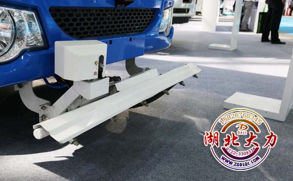 在此車的前部安裝有前清洗裝置,噴嘴噴射出的高壓水流能夠完成對路面的清洗任務(wù)。此外該裝置能夠上下轉(zhuǎn)動(dòng)12°、左右偏擺各18°,有效提高了清洗的效率,增加了作業(yè)寬度。