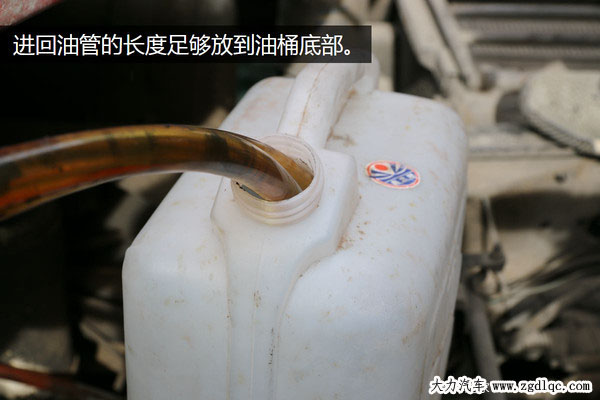 經(jīng)過(guò)一番努力,副油箱的出油和回油管都已經(jīng)被拆卸下來(lái),并且管子的長(zhǎng)度也足夠放到塑料容器的底部,接下來(lái)開(kāi)始準(zhǔn)備測(cè)試用的柴油。