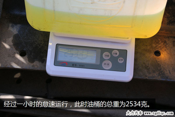 測(cè)試時(shí)間為一個(gè)小時(shí)整,到時(shí)間后我們立即關(guān)閉了發(fā)動(dòng)機(jī),此時(shí)油桶內(nèi)的柴油相比剛開(kāi)始測(cè)試的時(shí)候下降了大約一半左右,但這只是目測(cè),最終的精確結(jié)果需要通過(guò)稱(chēng)重來(lái)測(cè)量。