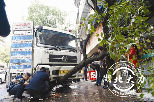 宜昌街頭灑水車連撞兩車后又撞樹 幸無人員傷亡