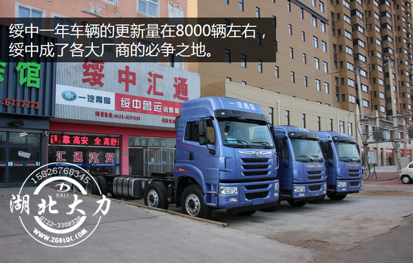 綏中一年車輛的更新量在8000輛左右,綏中成了各大廠商的必爭之地,在綏中各個品牌的卡車經(jīng)銷商基本都能看見。其中解放的在當(dāng)?shù)氐谋S辛磕苓_到80%,當(dāng)?shù)貙τ诮夥诺钠焚|(zhì)還是比較認可,在綏中的大街上J6隨處可見,而且以領(lǐng)航版居多。