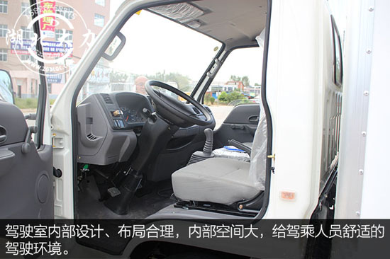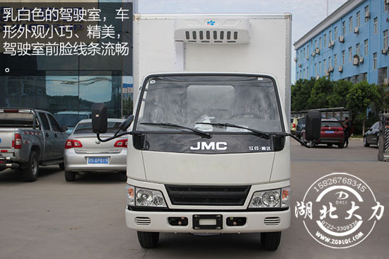 江鈴順達(dá)冷藏車的駕駛室采用流線型設(shè)計(jì),外觀方方正正,各邊棱角分明。車窗面積擴(kuò)大,為駕駛員提供了良好的駕駛視野。霧燈、大燈、轉(zhuǎn)向燈一字排開安裝,梯形設(shè)計(jì)更美觀。江鈴順達(dá)的經(jīng)典LOGO標(biāo)志“JMC”位于整個(gè)駕駛室的正中間,標(biāo)志明顯易見。