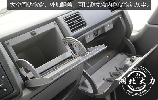副駕前面裝有兩個(gè)大空間儲存盒,它是駕駛室內(nèi)一個(gè)良好的輔助,可以用來存儲一些體積大一點(diǎn)的物品。所有的物品集中放置,可以保持整個(gè)駕駛室內(nèi)的干凈、整潔。