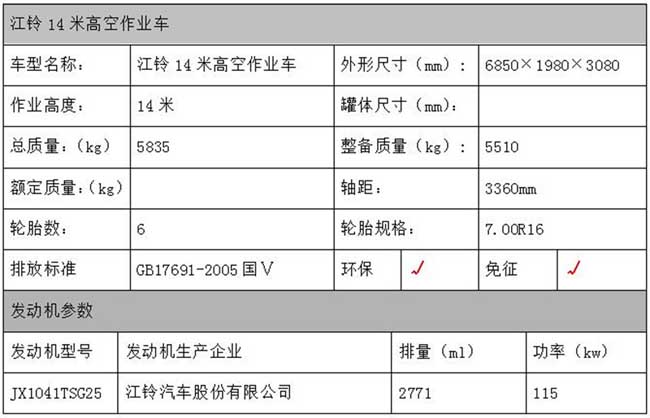 江鈴14米高空作業(yè)車詳細(xì)配置及參數(shù)說(shuō)明 |