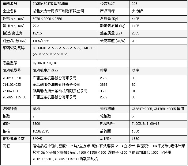 東風(fēng)輕卡系列加油車有,東風(fēng)小霸王,東風(fēng)福瑞卡,東風(fēng)多利卡等,按公告尺寸罐體容積可達(dá)6.3立方,朝柴96馬力,2.2噸前橋,后橋3噸,氣剎,軸距:3300,歐二底盤,改國(guó)三手續(xù),7.00輪胎,整車價(jià)格:6.95萬(wàn)元(含稅控加油機(jī)及15米加油管)。