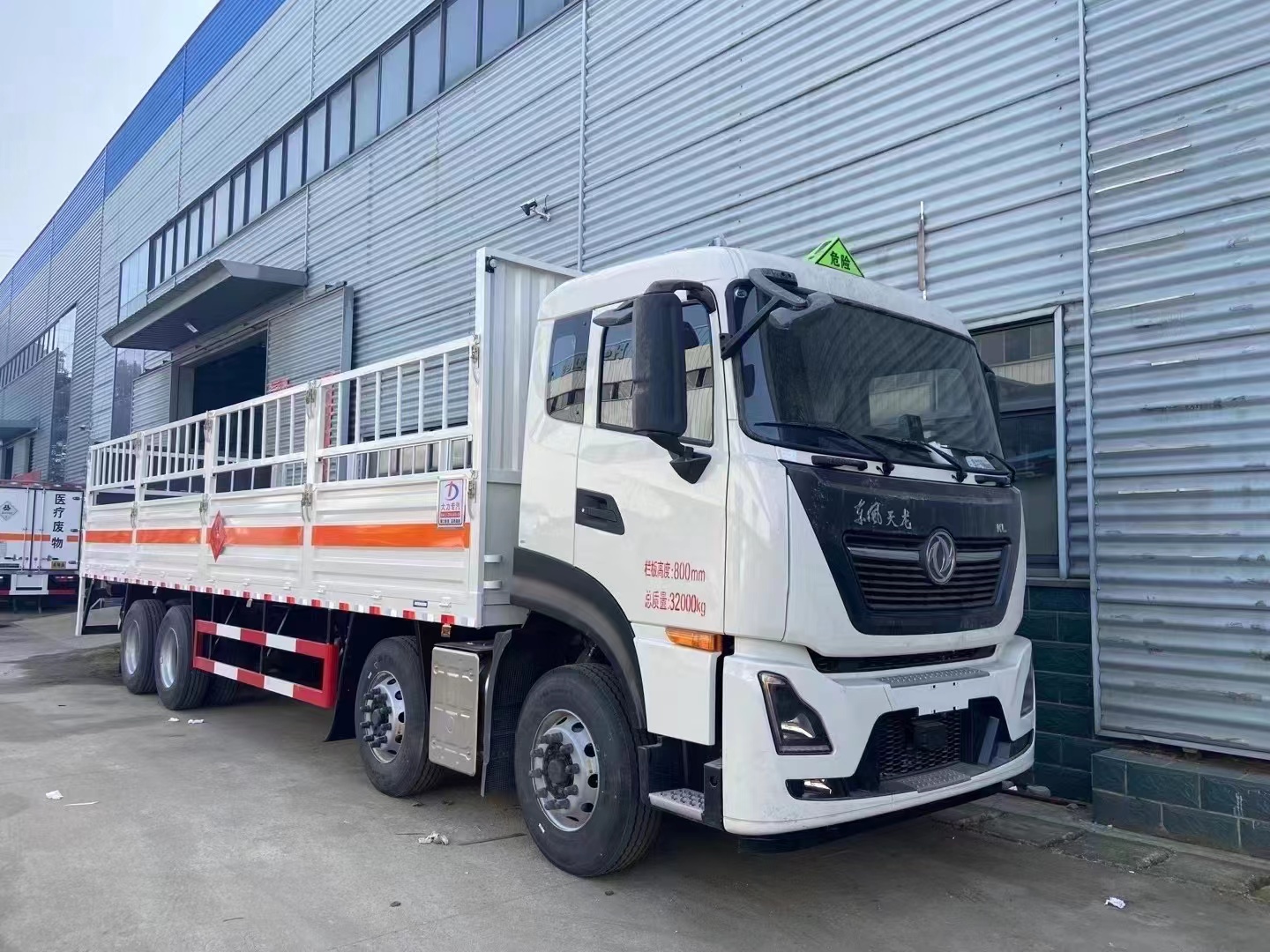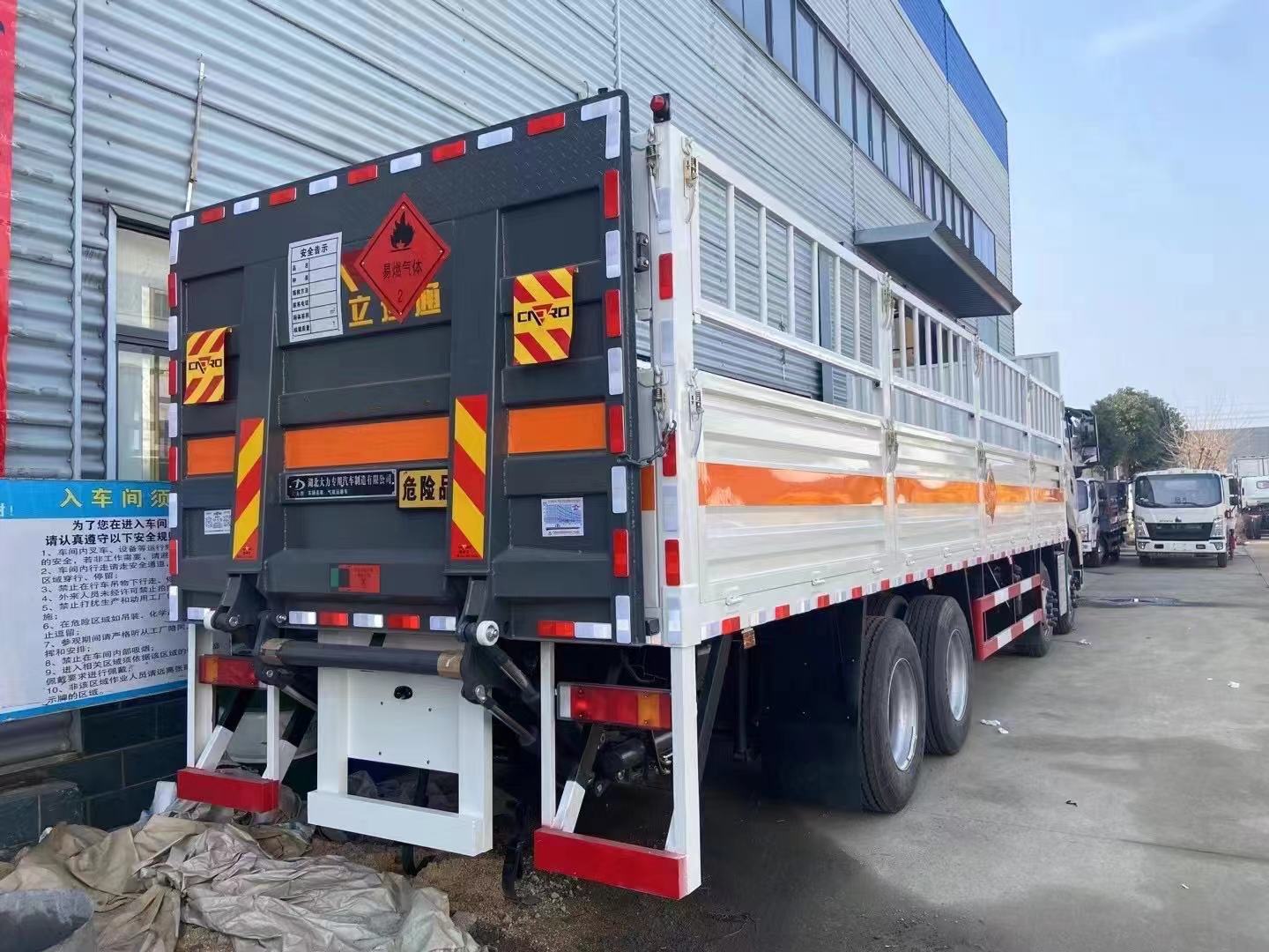 東風(fēng)天龍前四后八氣瓶車,9.6米貨廂,DDI發(fā)動(dòng)機(jī),350馬力,2噸液壓尾板。