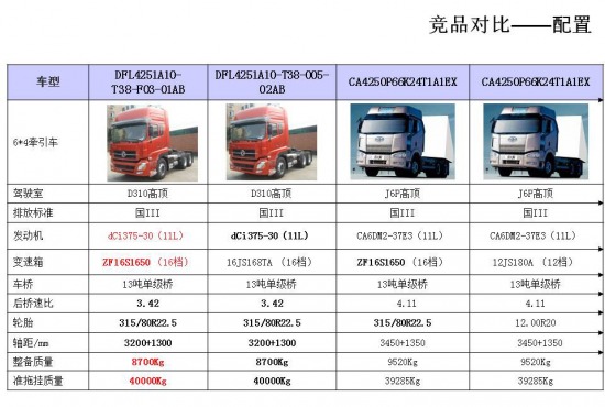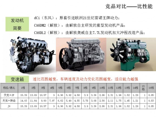 最高車速與變速箱最高檔速比和后橋速比有關(guān),天龍憑借16檔0.85速比、3.42的后橋速比優(yōu)勢(shì),最高車速最快。但建議客戶將車速控制在80-90Km/h,發(fā)動(dòng)機(jī)轉(zhuǎn)速在1500rpm以下,將會(huì)獲得更優(yōu)的油耗表現(xiàn)。