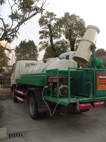 綠化多功能噴藥車采用新的風(fēng)進(jìn)噴霧方式,裝配噴藥專用柴油機(jī)組,為噴藥提供專一動力來源。風(fēng)機(jī)安裝可360°調(diào)整的直流噴嘴兩只,沖洗寬度可達(dá)到25米以上,調(diào)整角度后,還可對道路面旁的高大樹木進(jìn)行沖洗;裝有兩只可噴淋后灑裝置,主要對垃圾場道路進(jìn)行保潔和壓塵,灑水寬度可達(dá)18米以上;高射槍的射程可達(dá)30米以上,可調(diào)節(jié)成霧狀或柱狀進(jìn)行噴灑。