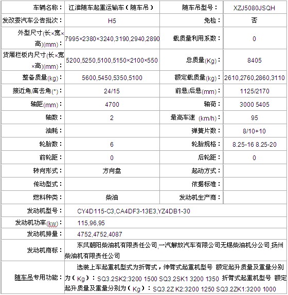 江淮隨車起重運(yùn)輸車主要技術(shù)參數(shù)