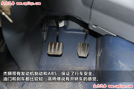 杰獅帶有ABS,剎車很靈敏,油門采用的小踏板,駕駛感覺跟轎車一樣。另外發(fā)動機帶有發(fā)動機制動,跑四川等山路地區(qū)的時候效果非常明顯,很少需要去踩剎車制動。這樣不僅更加安全,而且剎車蹄片磨損也會減少,使用成本也降低了。