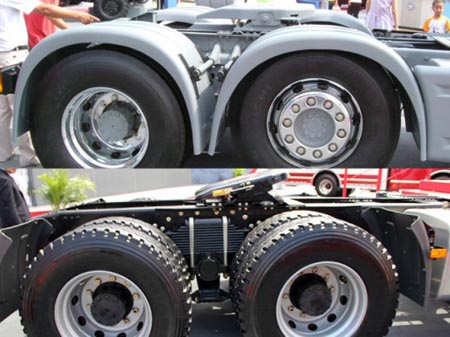 當(dāng)年的J6HC采用了6×2的驅(qū)動(dòng)形式,第二橋?yàn)榭商嵘慕Y(jié)構(gòu),驅(qū)動(dòng)橋則采用空氣懸掛。目前的J6H采用6×4的驅(qū)動(dòng)形式。當(dāng)然,J6H應(yīng)該是一個(gè)系列,會(huì)有各種配置的產(chǎn)品。不過取消了驅(qū)動(dòng)橋的輪罩有些遺憾。