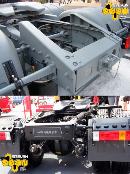 解放J6HC的車架結(jié)構(gòu)似乎是來源于三菱FUSO。而驅(qū)動(dòng)橋則是來源于UD(當(dāng)年的日產(chǎn)柴)的485橋。如今的J6H仍然匹配485橋,車架似乎改進(jìn)了。