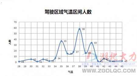 此圖為參與調查的卡友們所處在的駕駛環(huán)境的氣溫區(qū)間圖,調查顯示卡友們的駕駛環(huán)境基本在35—40攝氏度,最高氣溫為45攝氏度。該項調查證明大多數(shù)卡車司機的駕駛環(huán)境已經超出了人體感受的舒適度。