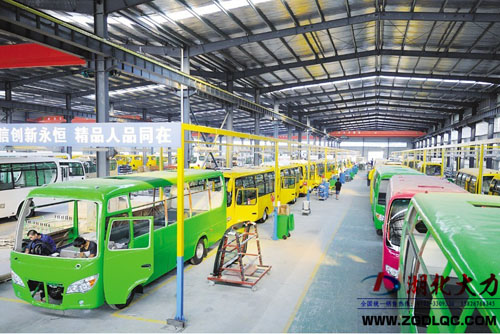 大力客車瞄準(zhǔn)市場需求,產(chǎn)品開發(fā)以校車為主,贏得商機(jī)。目前公司每月接到校車訂單400臺以上,滿負(fù)荷生產(chǎn)仍供不應(yīng)求。圖為忙碌的客車總裝車間。 (李文軍 攝)