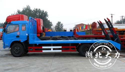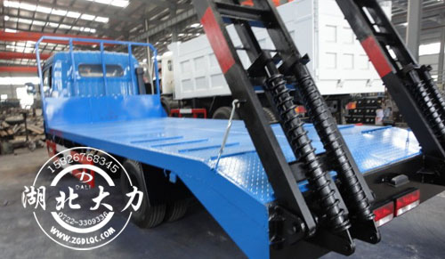 湖北大力專用汽車有限公司東風(fēng)153平板運(yùn)輸車整車尺寸8990×2500×2770MM,平板可用尺寸約6.7米,橫梁采用100×100×5MM國標(biāo)方鋼,間距300MM,面板采用5MM厚花紋板,板面焊多根16的螺旋鋼,尾部帶雙彈簧爬梯,支腿2個,東風(fēng)153平板運(yùn)輸車尾部爬梯標(biāo)配長2.2米,也可根據(jù)客戶需要加長至2.5米,還可以選裝液壓爬梯,價格另計。