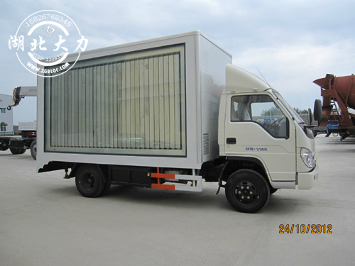 商品展銷車,選用福田底盤,3360軸距,整車長約5.995米,上藍(lán)牌,C照可以開,舞臺面積18-24平方;為了滿足不同需求的用戶,駕駛室有兩種配置,一種經(jīng)濟(jì)實惠的窄體駕駛室,另一種是豪華大氣的寬體駕駛室,可以選裝方向助力和空調(diào);側(cè)面展開舞臺面積在16平方左右,配有舞臺梯、燈光架、幕布掛鉤及電源箱。