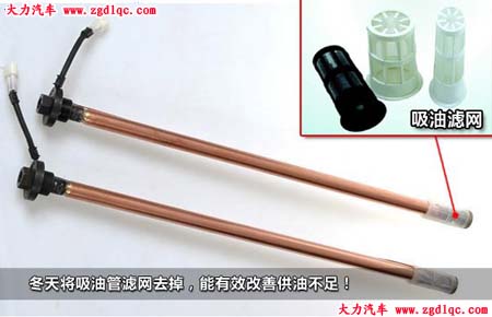 油箱探管底部通常出廠時安裝有附加濾網(wǎng),建議車輛入冬應(yīng)提前清洗油箱,由于柴油低溫稠化,很難通過濾網(wǎng),應(yīng)將其拆除。目前主流卡車的油箱探管與燃油表傳感器設(shè)計成一體,拆裝時注意拿取方向,可以從油箱口處觀察。