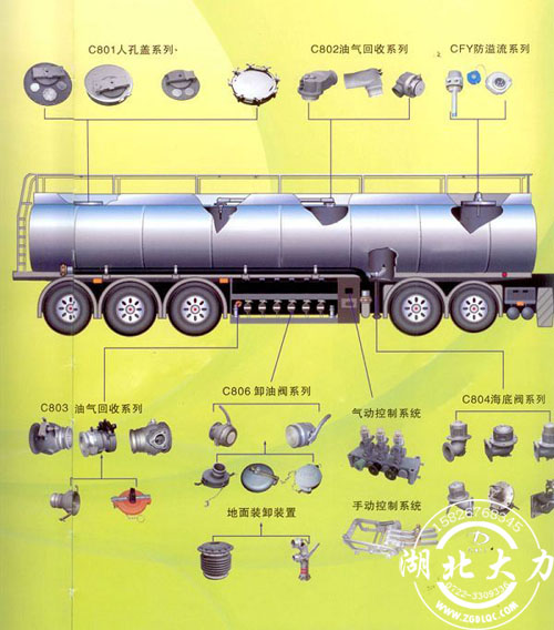 這個圖片可以很方便的看出來,油罐車可以分倉的,每一個倉都需要一鋁合金罐口(也稱為人孔),可以帶防溢漏探頭,海底閥,卸油接頭,海底閥,又稱緊急切斷閥,安裝于罐體底部,進(jìn)行下裝加油時使用,操作簡便、節(jié)時、安全環(huán)保。