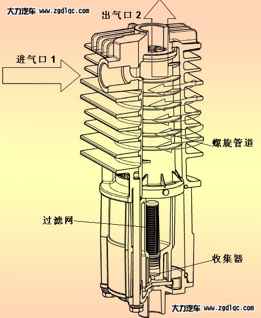 油水分離器,也稱冷凝器,有的主機廠叫“壓縮空氣油水分離器”。油水分離器是保證制動系統(tǒng)壓縮空氣清潔的第一道防線,在極端的使用工況下,系統(tǒng)中的油水混合物及雜質(zhì)會嚴重影響制動系統(tǒng)的性能和零部件的壽命。油水分離器一般安裝在空氣壓縮機和空氣干燥器之間,在其長期的使用過程中,只需要很少的維護。